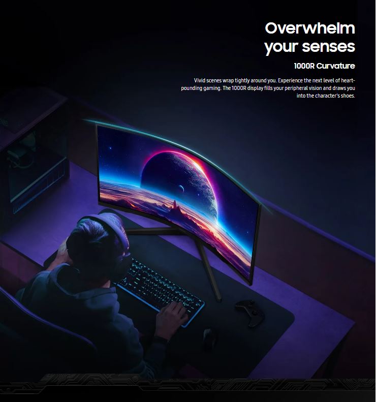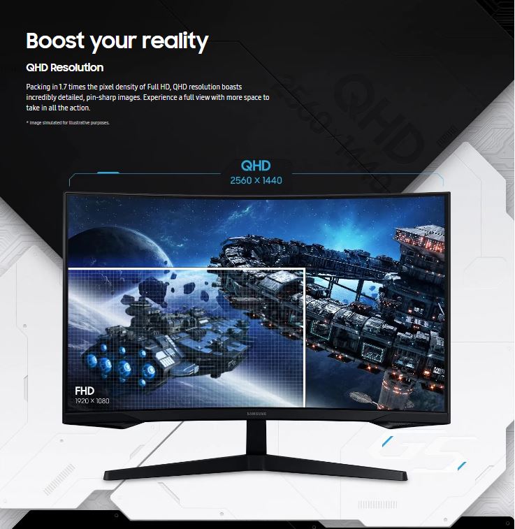 Samsung Odyssey G55C 32′ QHD Curved Gaming Monitor 2560 x 144 165Hz16:9 1000R 1ms VA AMD FreeSync HDR10 DisplayPort HDMI Tilt VESA Headphone 3YR WTY