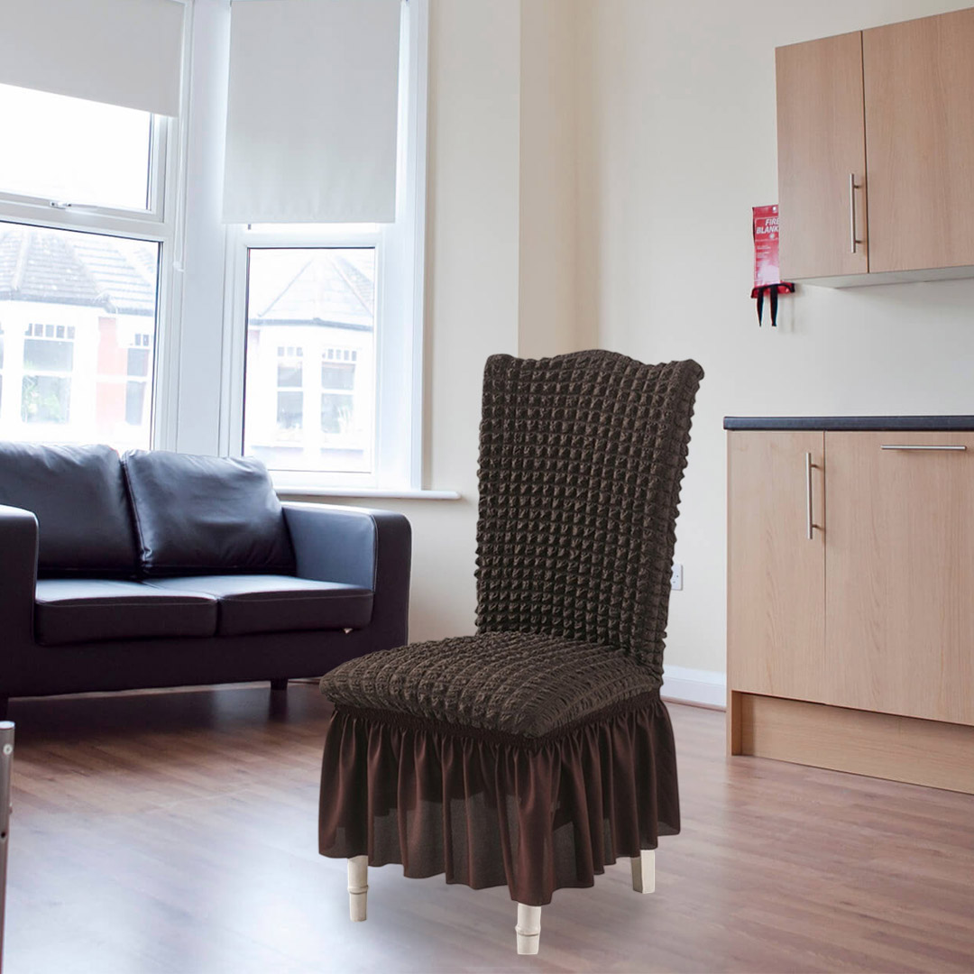 - 2 X SOGA Coffee Chair Cover with Ruffle Skirt