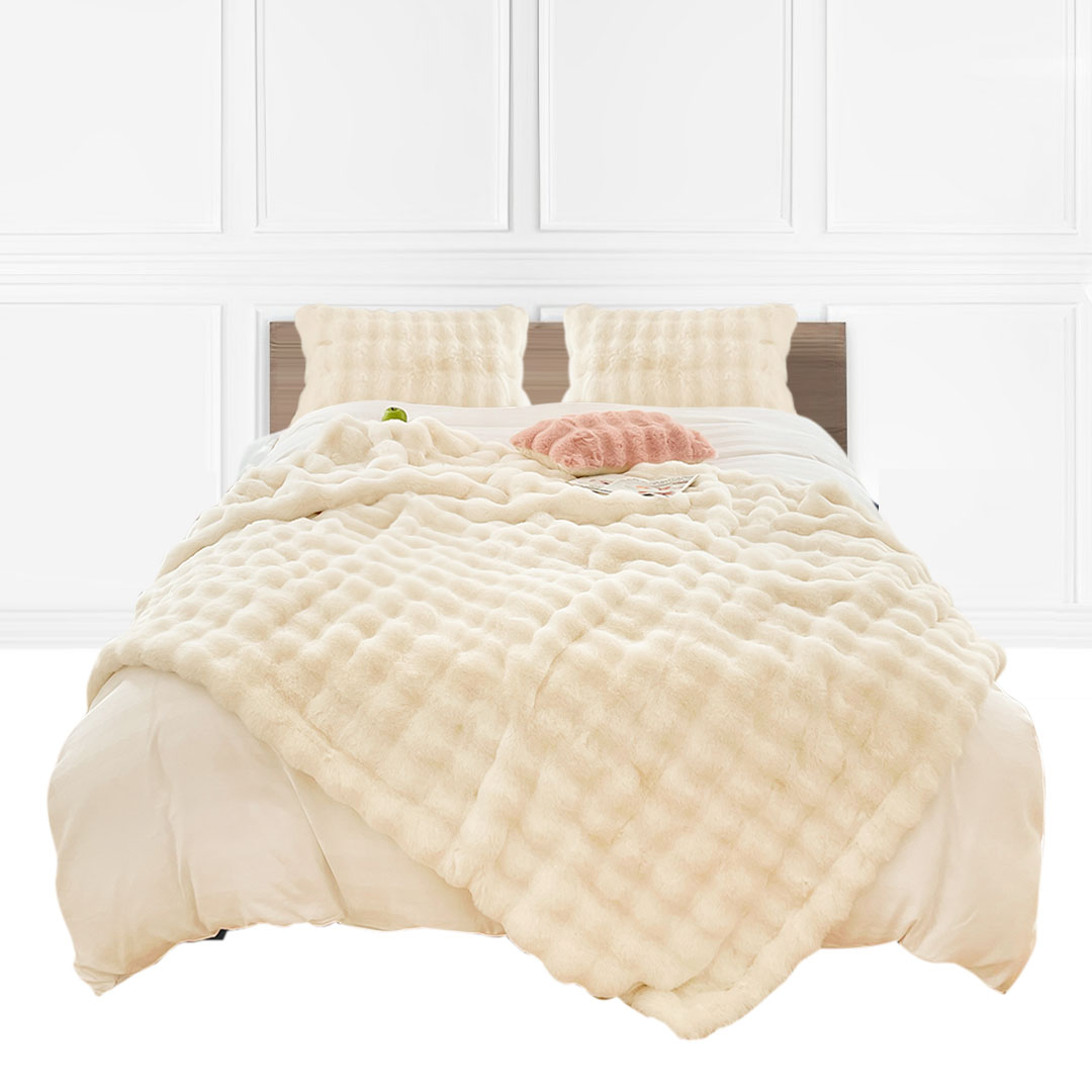 • Luxurious Softness: Crafted with plush fur, this blanket offers an indulgently soft and velvety texture, inviting you to wrap yourself in its cozy embrace.