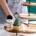 - 1X SOGA 20cm 2 Tier Brown Round Wooden Dessert Tray