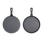- Round cast-iron griddle provides exceptional heat retention and distribution