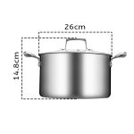 SOGA 26cm Stainless Steel Soup Pot Stock Cooking Stockpot Heavy Duty Thick Bottom with Glass Lid