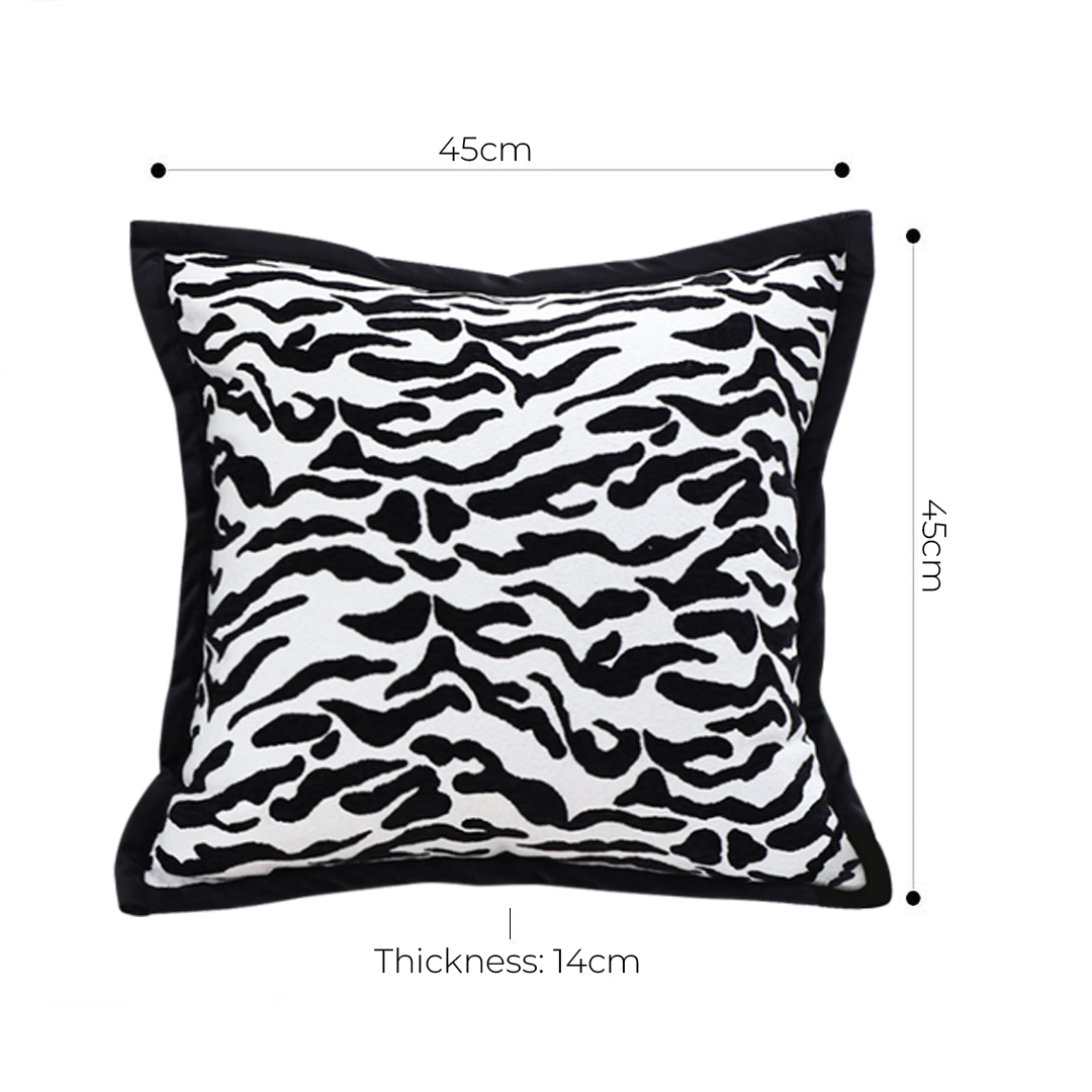 - Add a touch of modern elegance to your living space with this Black and White Luxury Cushion. This stylish decorative square pillow features a light mottled texture that combines black and white tones, creating a chic and sophisticated accent for any room. Perfect for enhancing the decor of your living room, bedroom, or office, this cushion brings a subtle yet luxurious touch to your interiors.