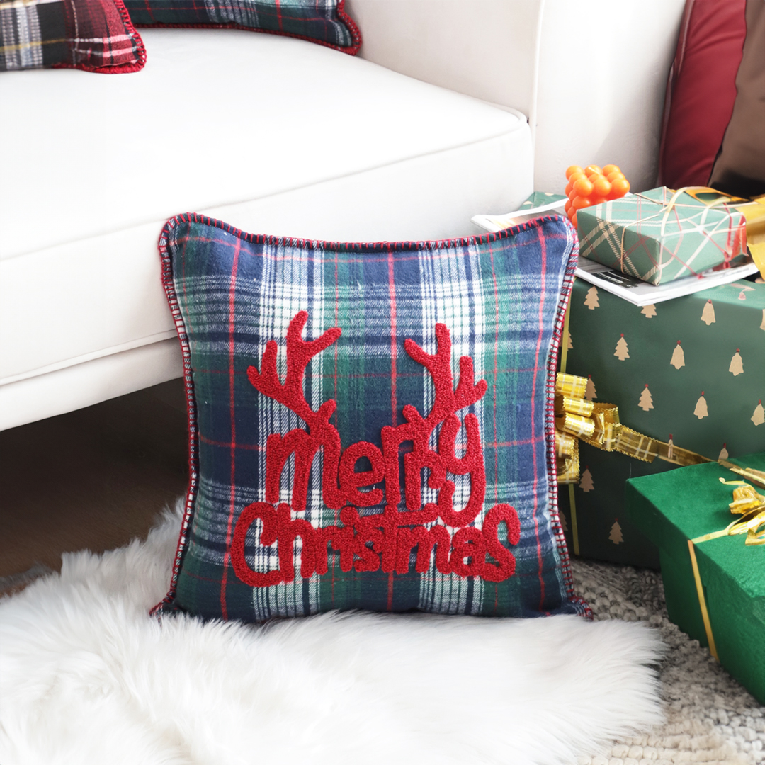- ThisMulticolor Christmas Plaid Throw Pillow with an antler design is a festive and stylish addition to your holiday home decor. Featuring a vibrant plaid pattern and a charming antler motif, this cushion brings a rustic yet festive feel to your living space.