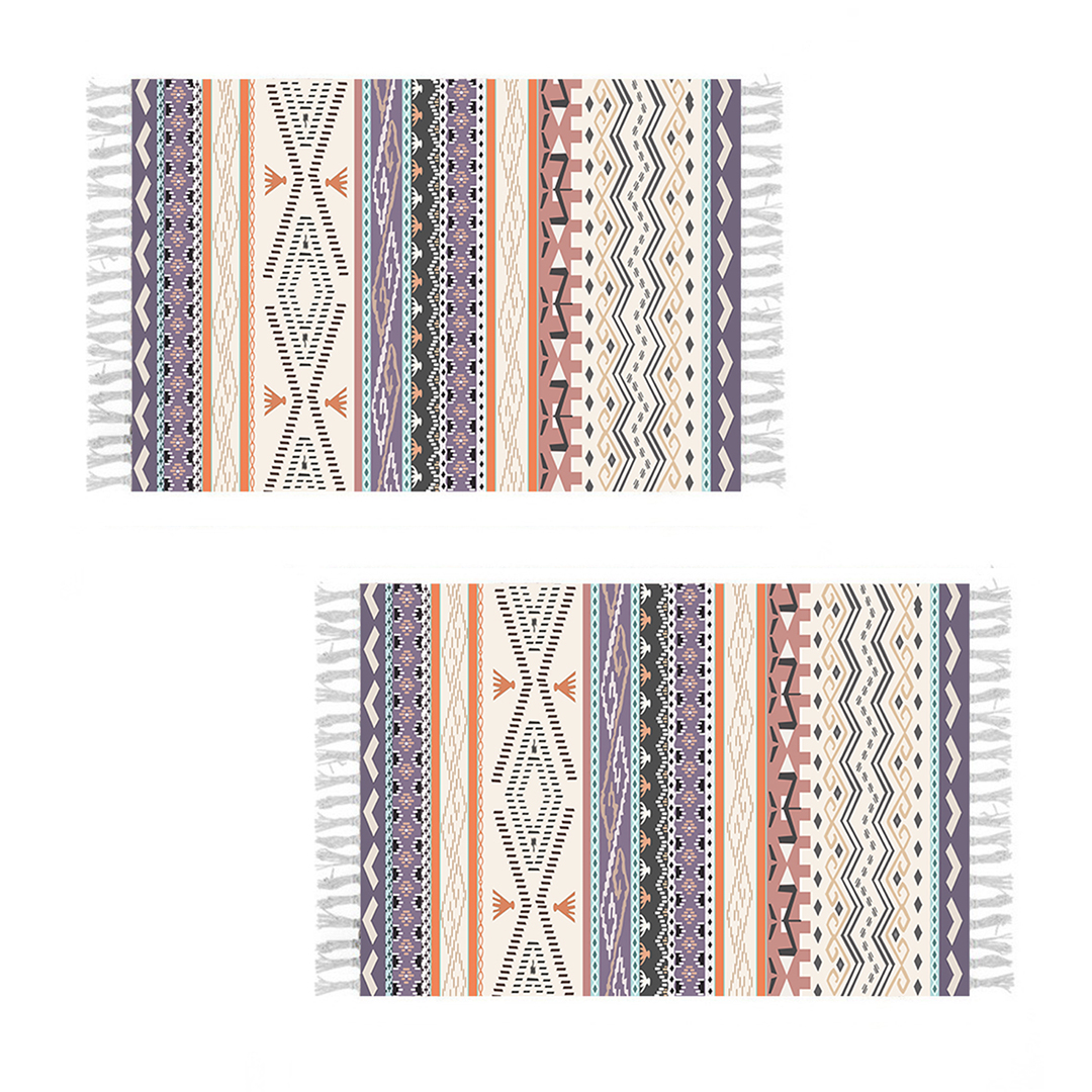 - Infuse your space with a vibrant pop of color by displaying this rug. It features a vivid striped motif with coordinating tassels to complete the look. Its versatile size makes it perfect for use in your entryway, beside your bed, or in your getting-ready space.