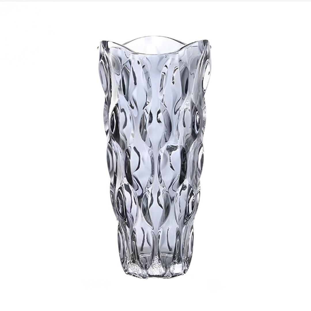 - Transform your home decor with this handcrafted clear glass vase. Standing 30 cm tall, this exquisite vase features a timeless design that complements any interior style. Whether you display it with a vibrant bouquet of fresh flowers or as an elegant standalone piece, this vase adds a touch of sophistication to your living space.