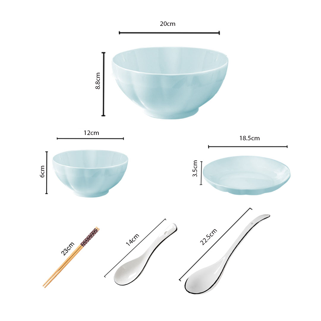 - 1X SOGA 9 pcs Light Blue Ceramic Dinnerware Set (4 Bowls, 4 Plates, 4 Spoons, 4 Pairs of Chopsticks, 1 Soup Bowl, 1 Big Soup Spoon)