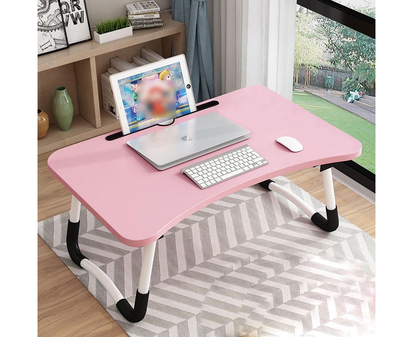 - 1 X SOGA Pink Foldable Bed Table with Notebook Card Holder