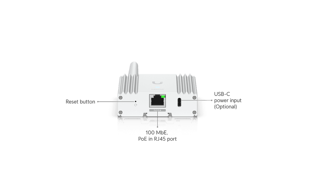 Proprietary super long-range, low-latency wireless gateway for UniFi Protect Sensors.
